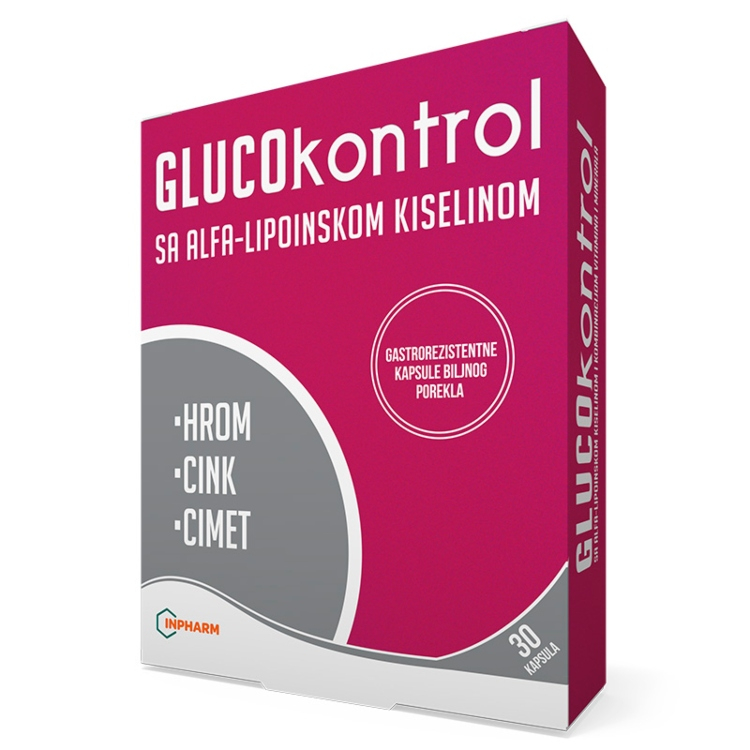 GLUCOkontrol kapsule doprinose poboljšanju funkcije nervnog i imunog sistema, i ublažavaju oksidativni stres i posljedice polineuropatije. GLUCOkontrol sadrži alfa-lipoinsku kiselinu, cink, hrom, folnu kiselinu, vitamine B1, B6 i B12, i cimet. Njihovo sinergističko dejstvo je značajno kod: